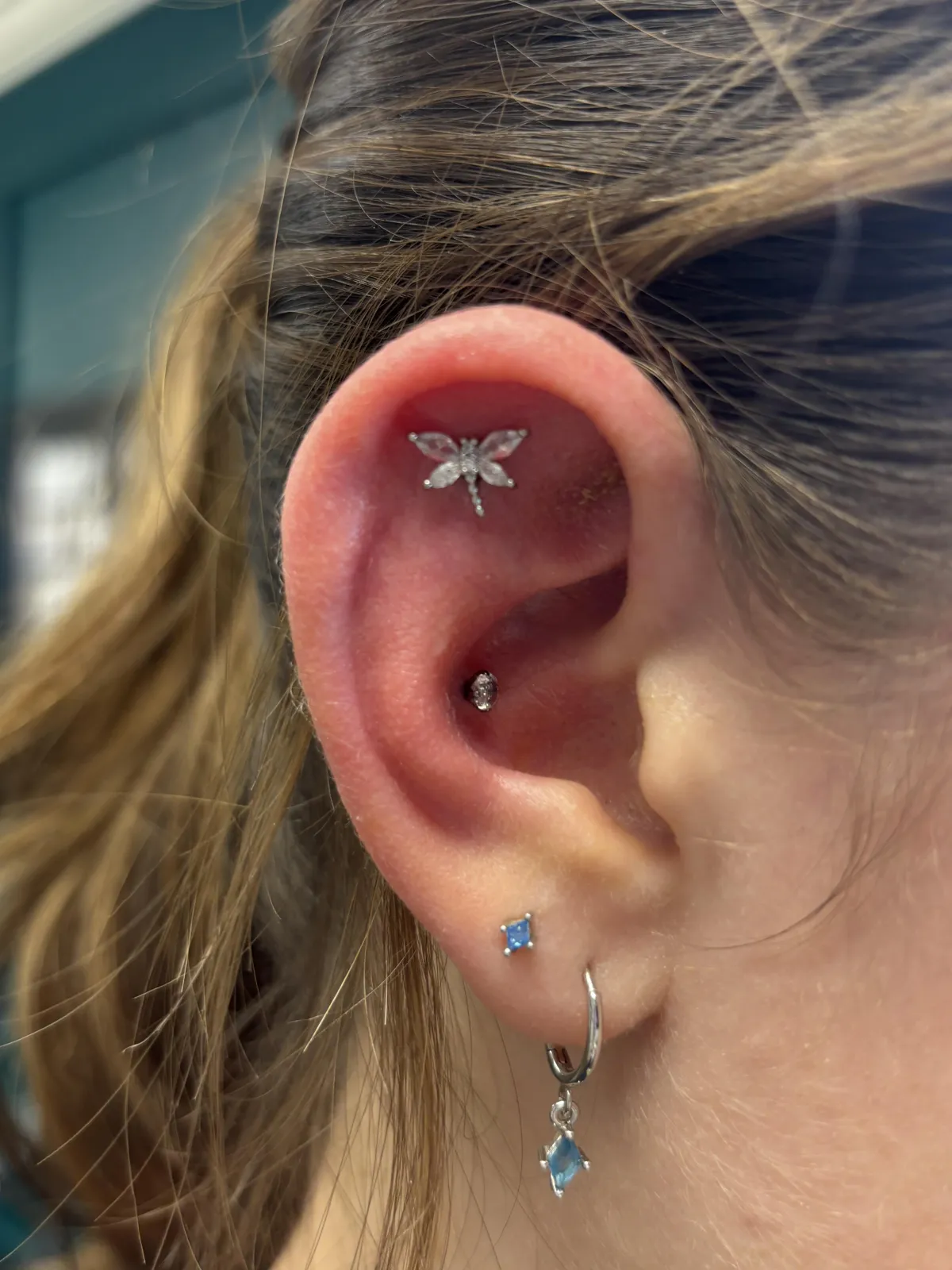 Hi! My name is Madison, I am 22 years old, and I am Hidden Gems' professional piercer in training and manager! I have been piercing since 2024 with Lacie's guidance, and it has been so much fun. Even though I am very new to my career, I know that my job is to offer a safe, clean, and lighthearted environment to anyone and everyone who wants to add to their style. The best feeling is knowing I can be part of making someone's day with a new piercing and helping educate people on the do's and don'ts for a piercing!
